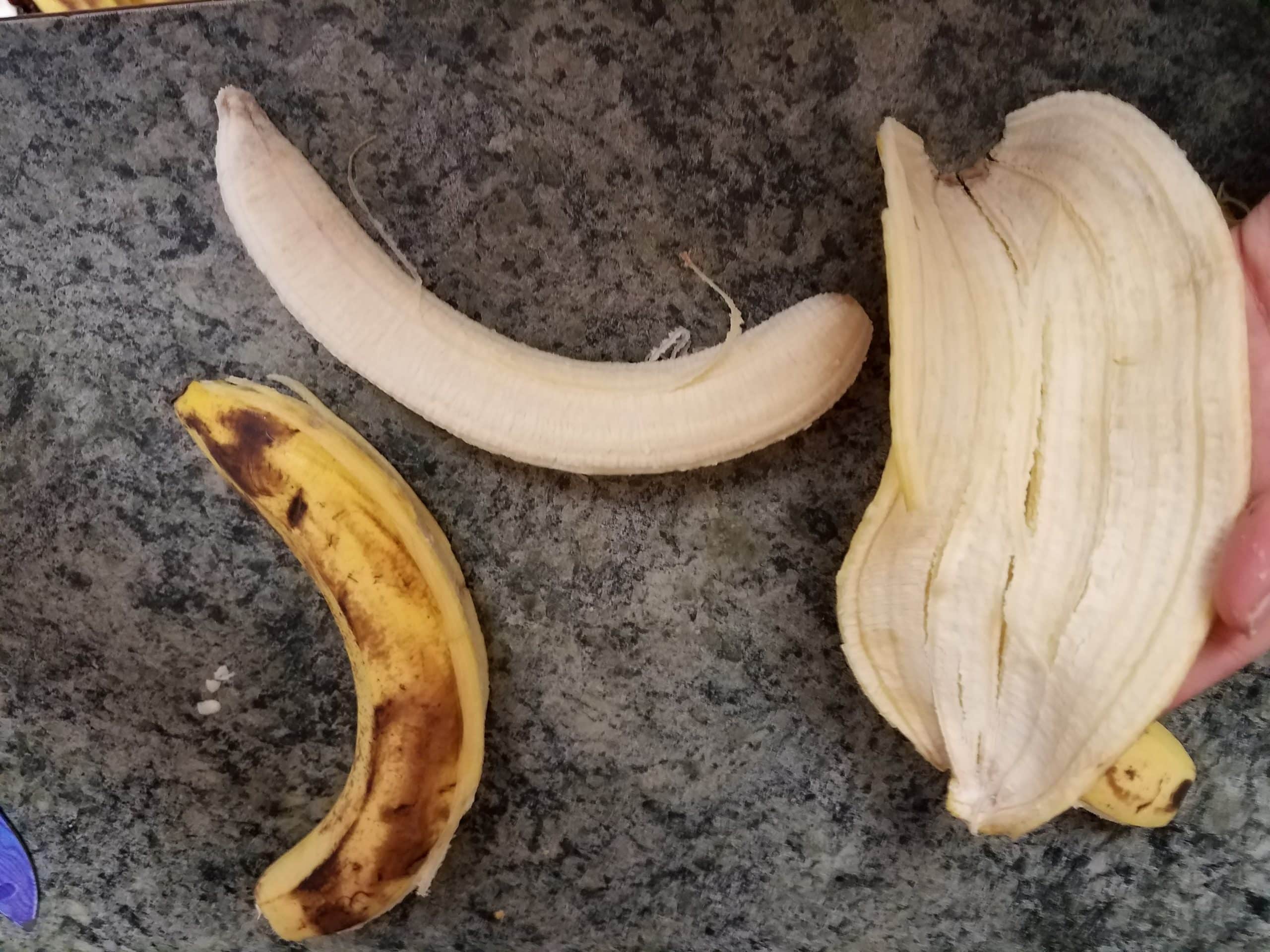 In the image below you can see I piled a bunch of bananas in the bowl. Peeled. The peels went into the compost bin.