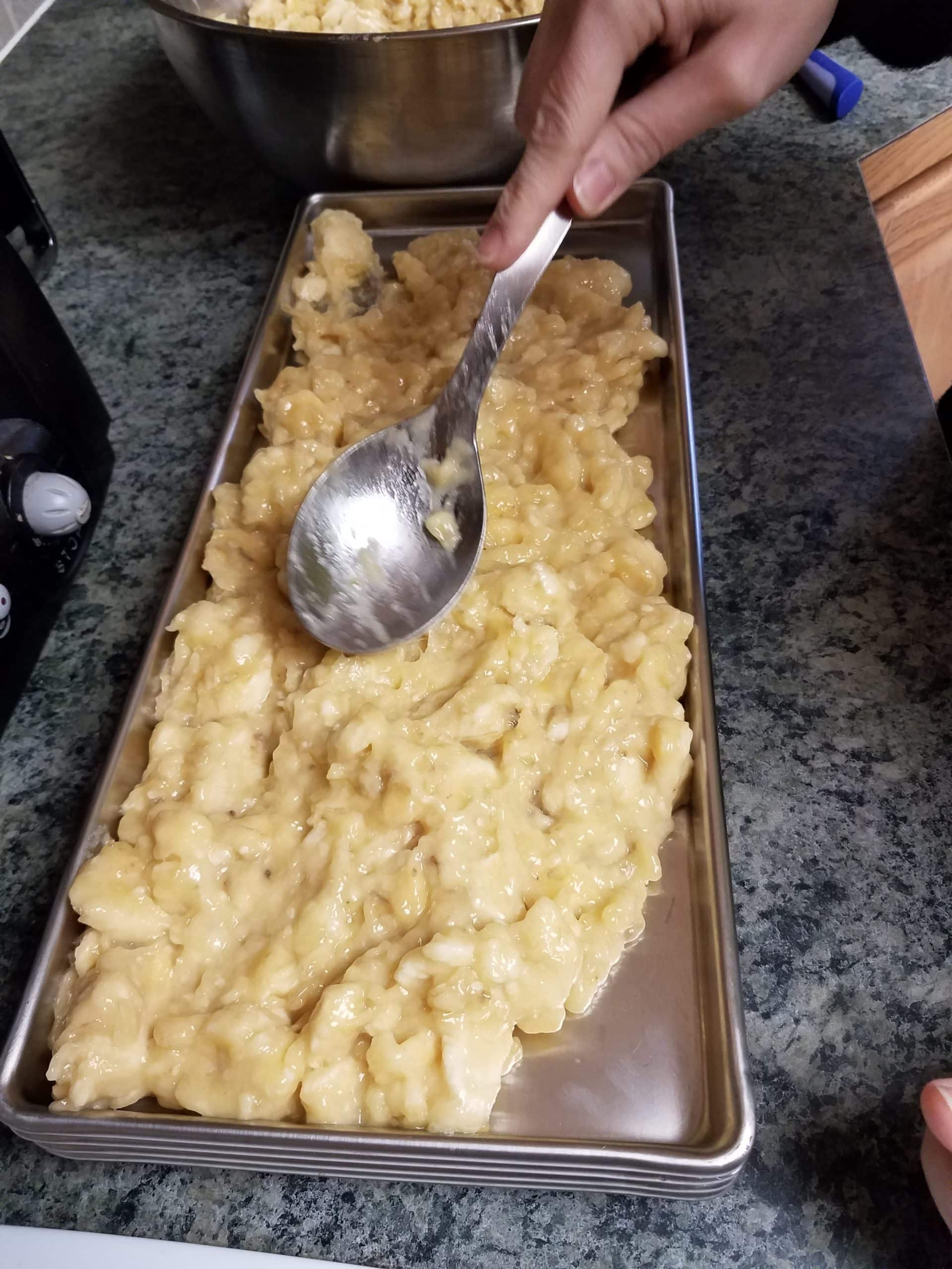 When the banana mash came out of the trays, it came out easily. But it was difficult to break up. I’ll do dividers next time.